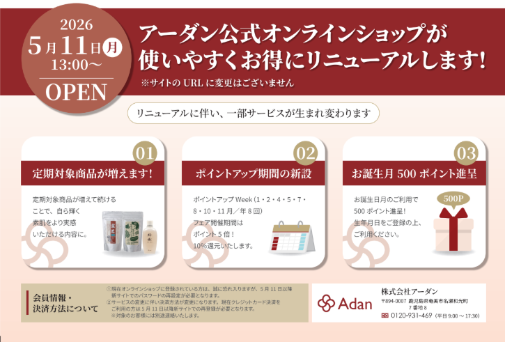 この度、セキュリティー強化とサービス向上を目指し、オンラインショップをリニューアルいたします。